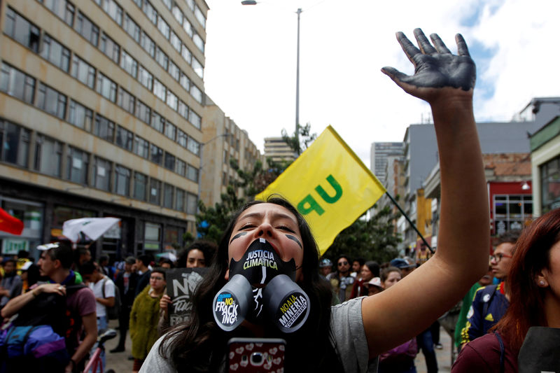 Hundreds of activists gathered outside the court building to protest fracking - one of 70 marches set to take place around the country on Friday. Fracking could nearly triple Colombia’s reserves of crude and gas, the government has said.